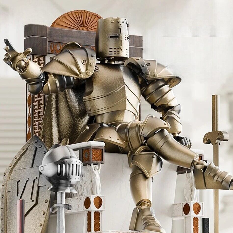 美しく仕上げられたゴールドの鎧騎士プラモデルです。詳細に拘ったデザインで、どの角度から見てもその存在感は抜群です。
